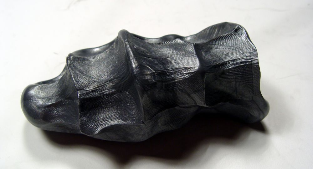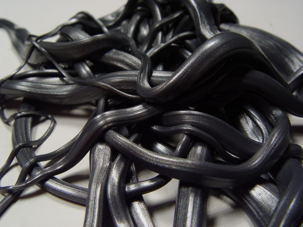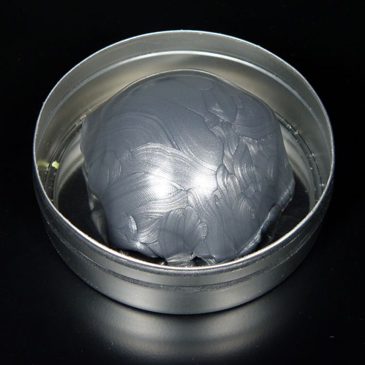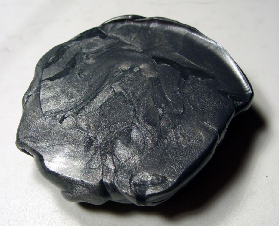 Šedá bezcitná plastelína s tmavým leskem.