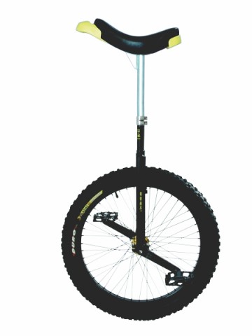 Jednokolka nejvyšší řady, určená pro náročnou jízdu v terénu a vysoké skoky, zesílená a robustní konstrukce a ráfek (48 děr), pneu 24x3,0, CrMO kliky, BMX hliníkové pedály