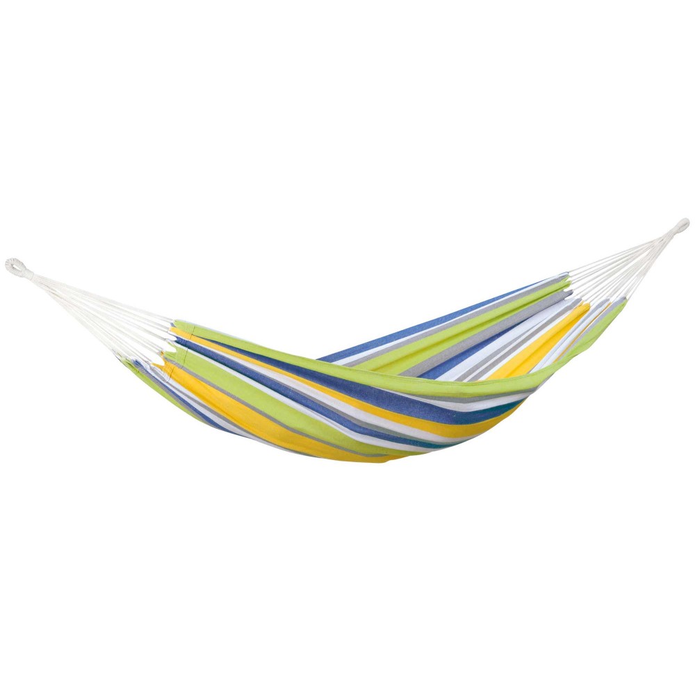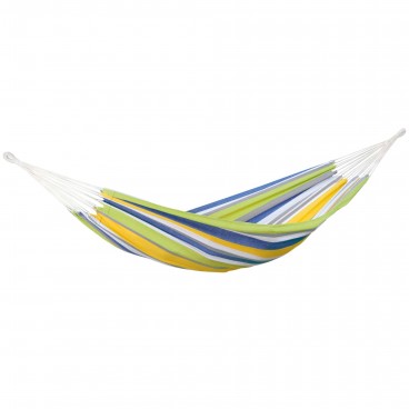 Krásná houpací síť v barvě kolibri, která přes kompaktní rozměry ještě nabízí dostatek místa pro jednoho dospělého nebo dvě menším děti.
