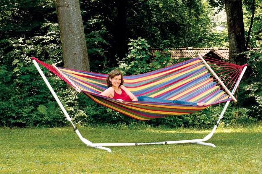 Houpací síť pro jednu osobu v provedení s tyčemi. Podařilo se nám ji navrhnout tak pohodlnou jako klasickou síť ..