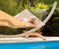 Stojan na houpací sítě. Vysoká kvalita zpracování. Vyrobeno ze smrkového dřeva z udržovatelně pěstovaných evropských lesů. Dřevo je impregnováno proti dřevokazným houbám, škůdcům a povětrnostním vlivům. Pozinkované kování. Je možné jej dále povrchově upravovat (olejovat, mořit, lakovat).