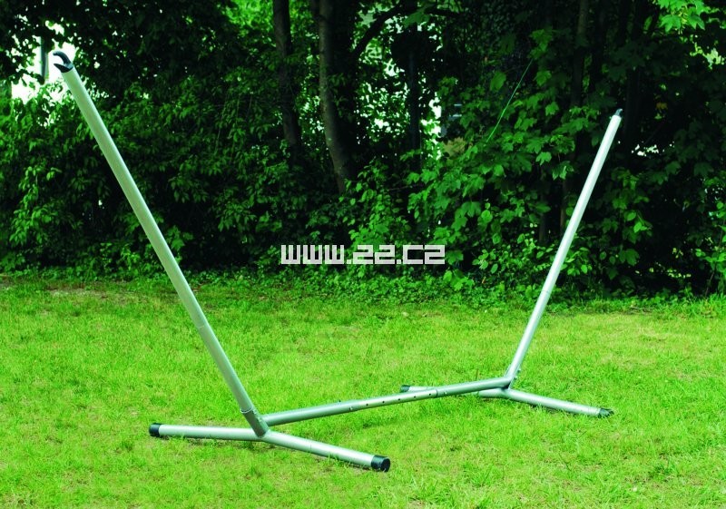 Popis: Kovový stojan na houpací sítě z ocelových trubek ošetřených práškovou barvou v provední stříbrném. Stojan je délkově nastavitelný. Dodává se v demontu. Baleno v kartonové krabici.