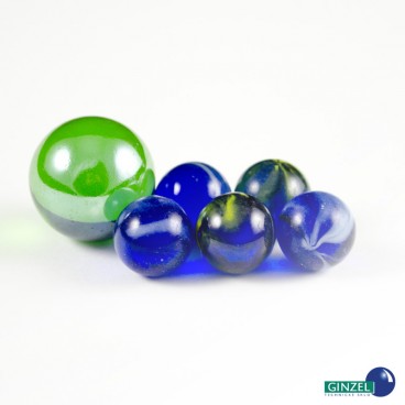 Skleněné cvrnkací kuličky Balení obsahuje 20 ks klasických herních kuliček o průměru 16 mm a jednu větší ku..