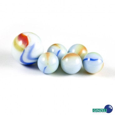 Skleněné cvrnkací kuličky Balení obsahuje 20 ks klasických herních kuliček o průměru 16 mm a jednu větší ku..